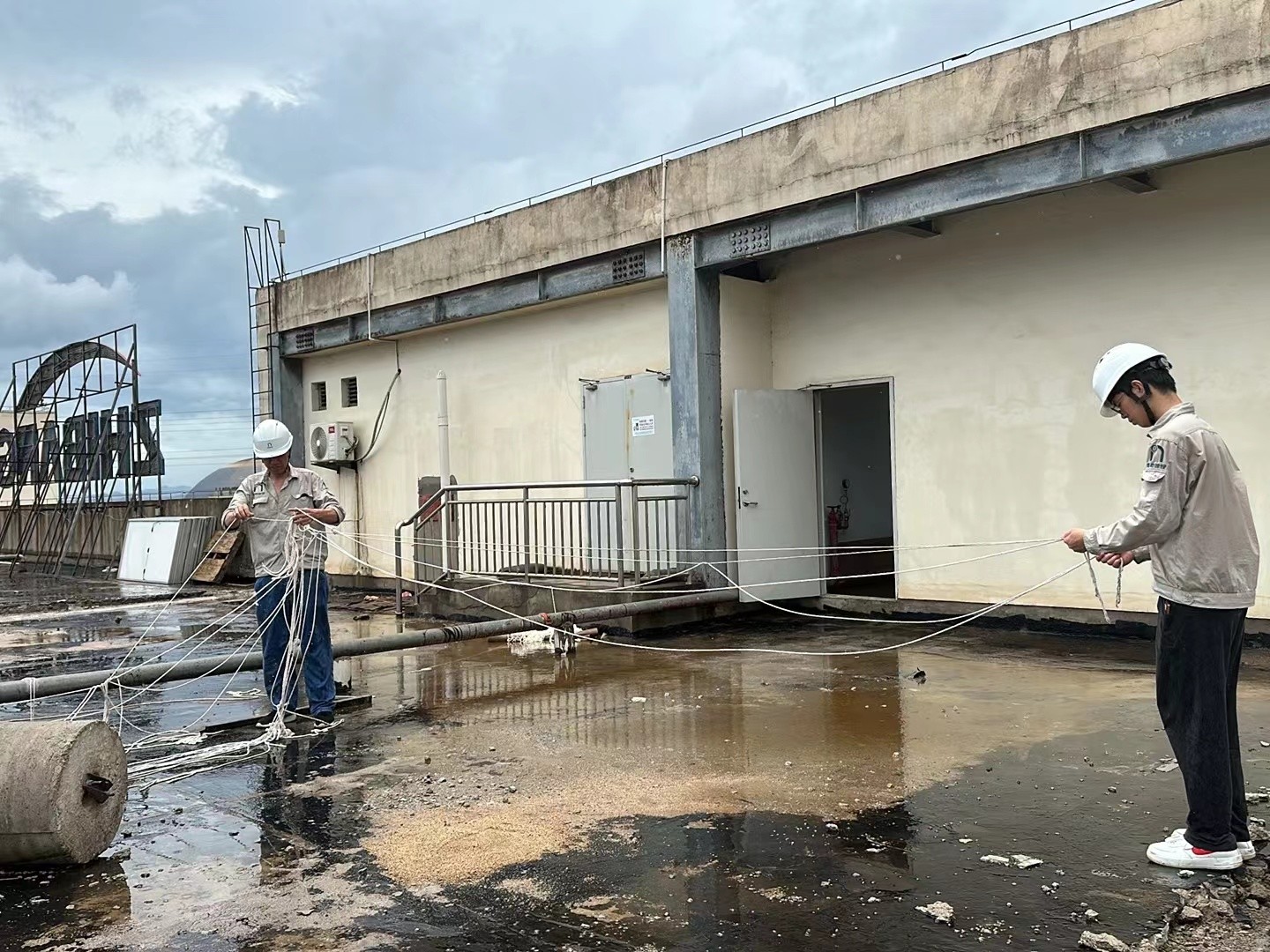 迅速組織專人對(duì)倉(cāng)庫(kù)屋面拆下來(lái)的光伏板做好防風(fēng)緊固,同時(shí)對(duì)物流園區(qū)門(mén)窗、排水設(shè)施設(shè)備進(jìn)行全面檢查,重點(diǎn)加強(qiáng)在車(chē)輛及設(shè)備停放、排水設(shè)施疏通、人員轉(zhuǎn)移等方面的安全排查,全面做好防臺(tái)防汛工作。